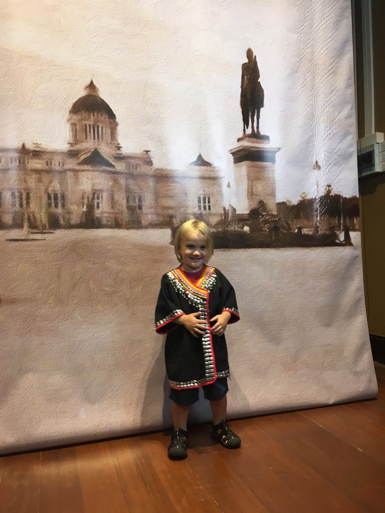 We have 3 nights, 2.5 days in Bangkok to explore so decided to leave temples for tomorrow. Instead we spent our first afternoon at Siam museum. It was super interactive and a great introduction to Thai culture. We initially only got 2 audio guides for me and the husband but that was evidently a mistake as we had them hijacked in the first room. Good old husband trudged back down and up the 3 flights of stairs to collect 3 more. My advice is get one each for the whole family!