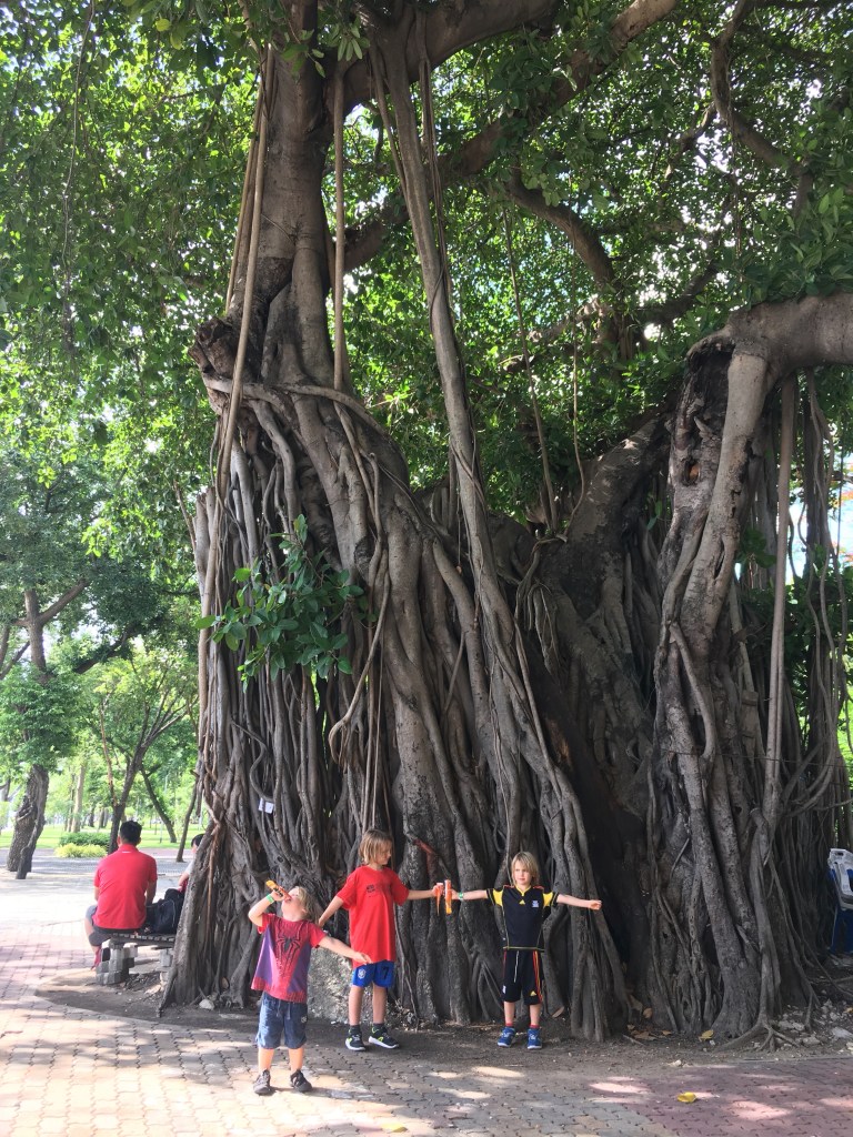 All of us conked out on the flight and managed to catch up on a couple of hours of missed sleep. Again Thailand side the boys are “calm” through the airport routine. And before we knew it we are in Thailand!