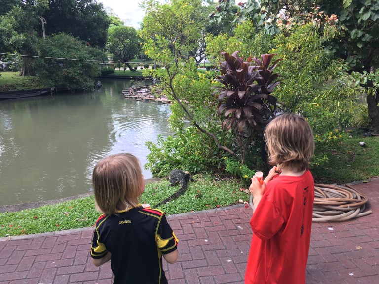 The rest of the evening was spent eating in a street cafe, exploring alleyways and playing in a local park. A absolutely massive lizard scared the boys who shouted “mummy a dinosaur “!