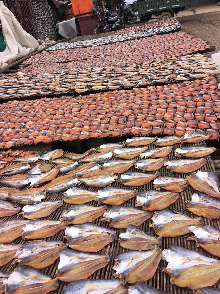 The last stop was a rather stomach churning visit to a fish market! Piles of fish parts from head to fins, blood running everywhere, the constant thud of axe hitting chopping board, the air thick with the smell of fish meant it was definitely an assault on the senses. As fascinating as the place was, with its vats of maggot made fish paste (another local delicacy) I was relived to leave. Definitely an eye opening experience.