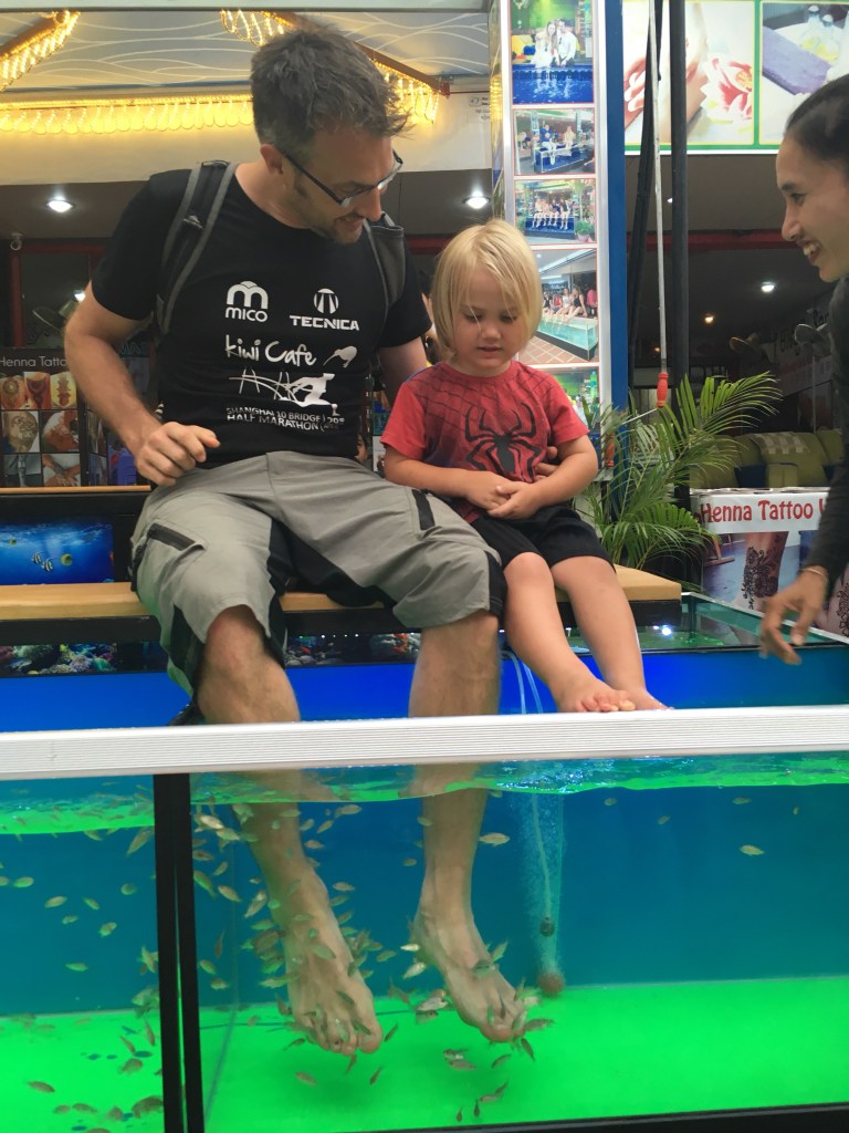 We had planned to visit Angkor Thom in the afternoon but the heavens opened during our lunch. It rained so much that our tut tut wouldn’t start! When it eventually did we headed back to our hotel to play on the pool and rain. Followed by a fish spa and a delicious Italian!?!