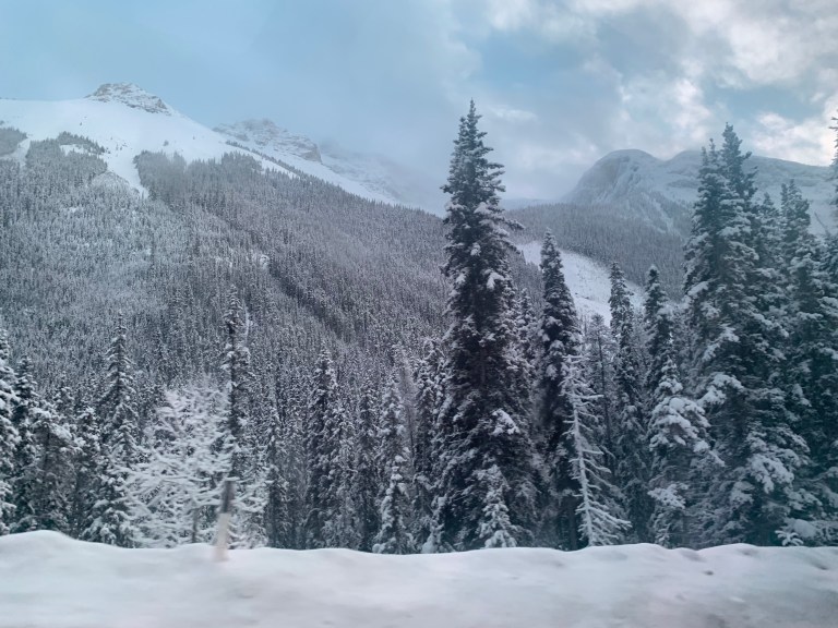 It was a early pick up (Vancouver time, but who knows what time our bodies thought it was) but the boys were so excited to go… Ezra has never really seen snow ( no I don’t count the sprinkling Shanghai had last year) and the older two don’t remember it from there few years in the uk. The journey it’s self was straight forward… we even managed to report our lost bag and were told it would be delivered to our hotel in Banff?!? (Go Air Canada).