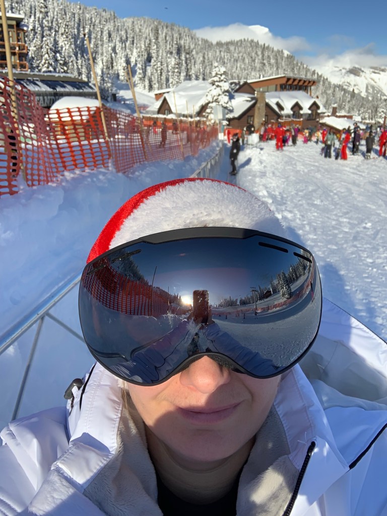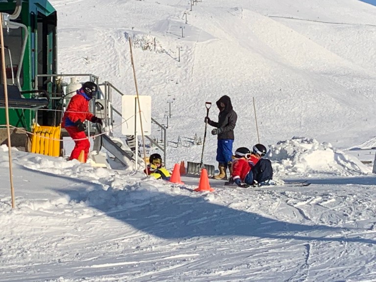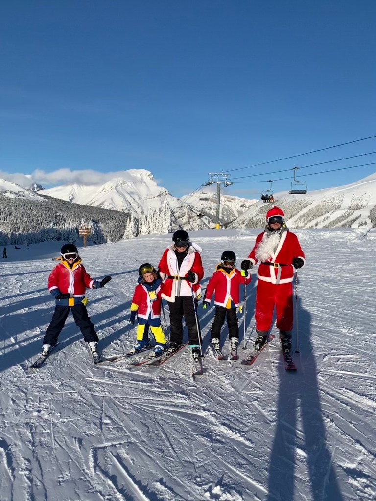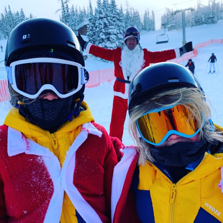 They all made it back down in one way or another and were super keen to go again and again! By the end of the lesson, all were super confident on the blue, lifts had a “ma ma hu hu” (horse horse, tiger tiger) (50/50) success rate but husband’s Santa beard had been ditched due to it flying in his face! Who knew long beards were impractical for winter wonderlands!