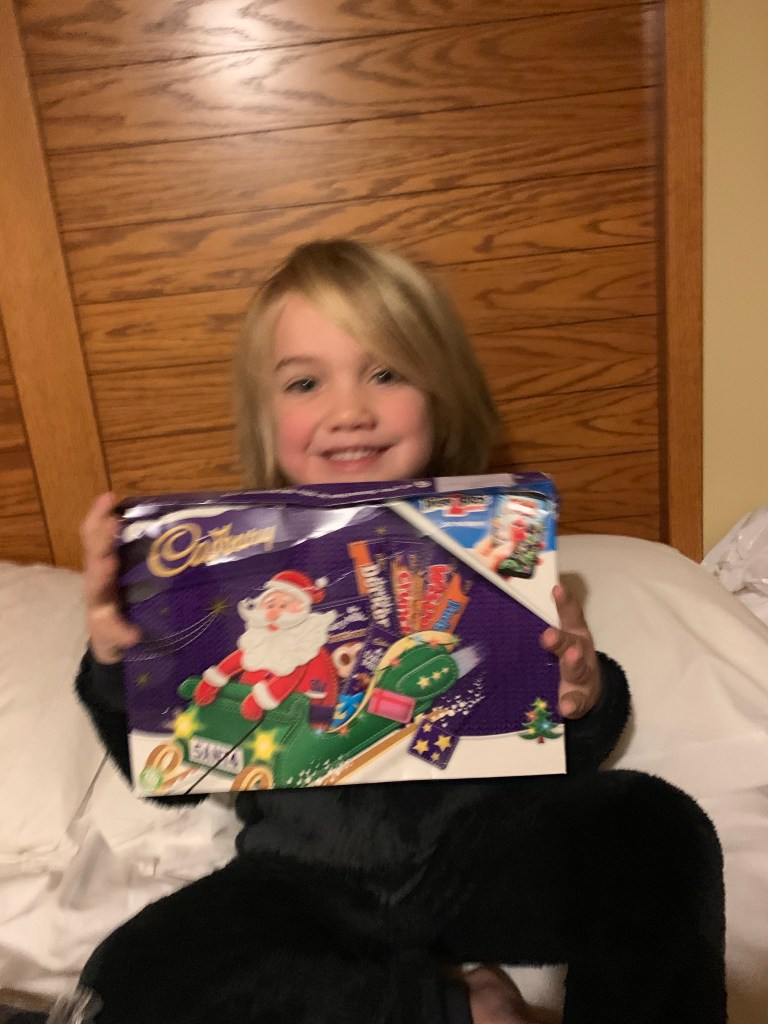 As we headed to breakfast, Santa walked past carrying a snowboard. Boy blue practically jumped on him with excitement. The poor man played the role perfectly asking what his name, age and if he was happy with his gifts.