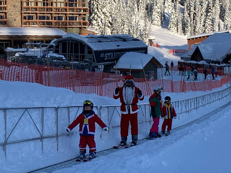 Boy blue excitement further grew during breakfast as he spotted more and more Santa’s, elves and reindeers hitting the lifts. If you dressed in Santa outfits, you got a free lift pass, which made the day very entertaining.