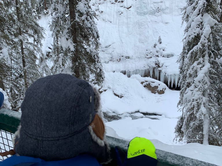And the final act was a stunning 30m high frozen waterfall decorated in ice climbers. I took all our skills of cohersion to stop middle man climbing over the barrier to have a go. I’m not sure my heart will cope when he is old enough to make his own life choices!
