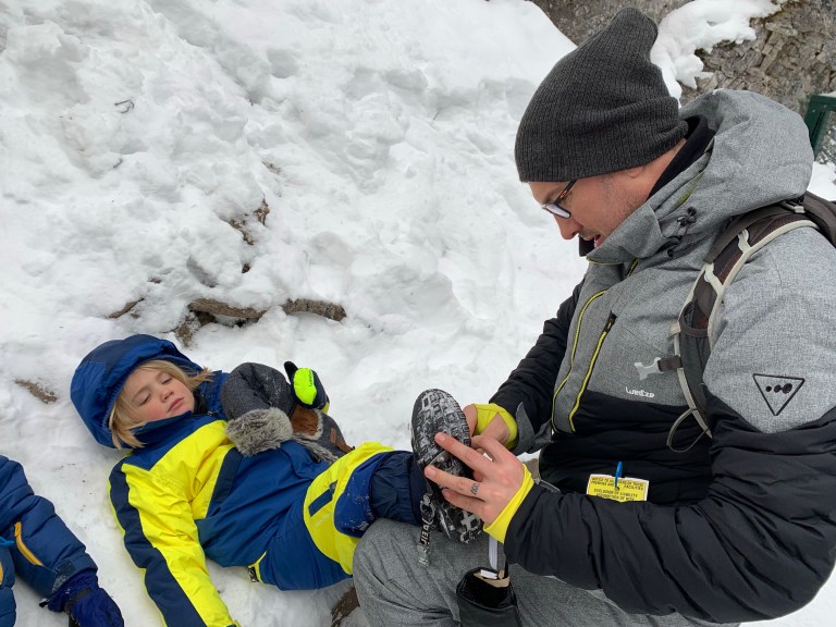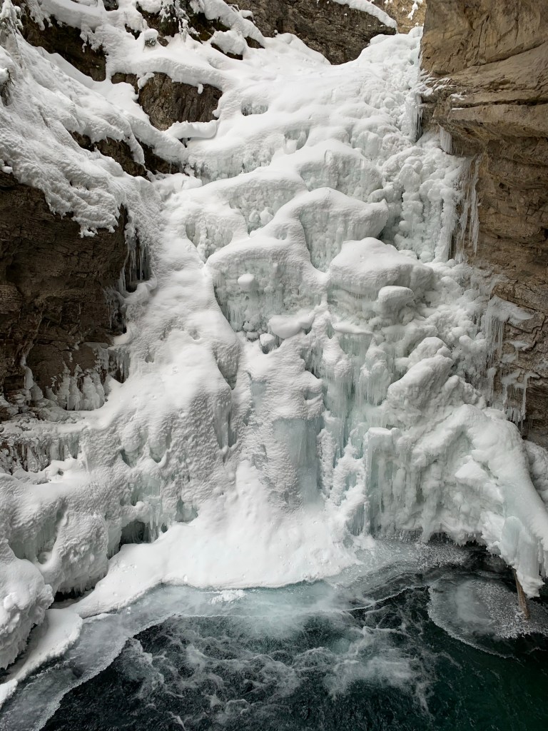 The following day was New Year’s Eve and I was keen to hike Johnston’s Canyon… but no tours would take under 8 unless we booked a private trip at over $900!!! After a little research, we decided to hire a taxi and some crampons and go for it solo! And it was beautiful! Once the boys picked up their feet properly and stopped pulling of the crampons every 100m it was a pleasant walk!
