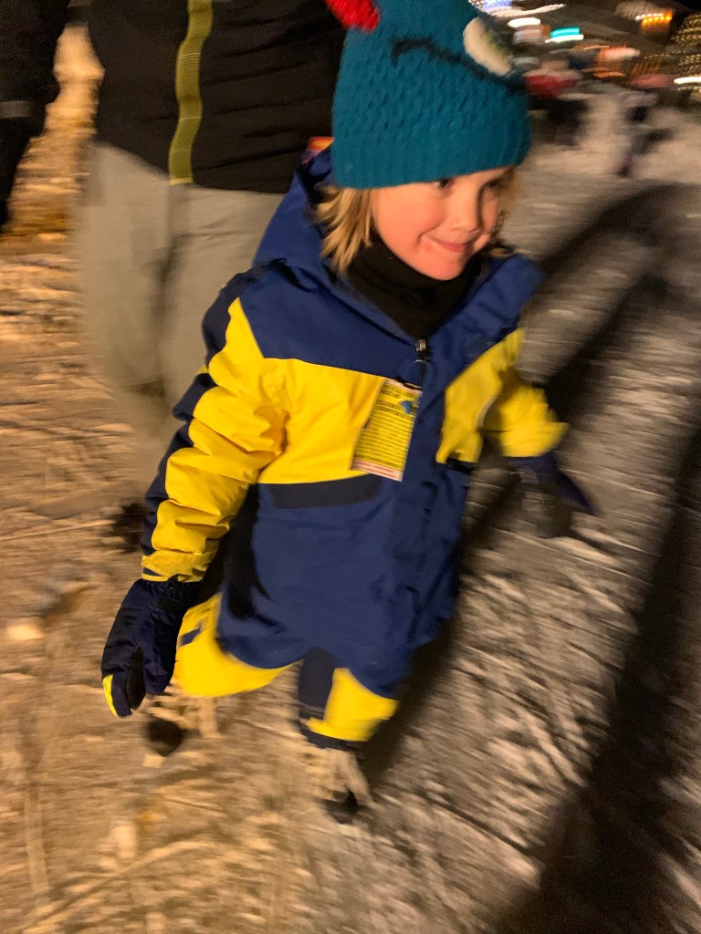Banff had shut off the Main Street for festivities, offering free activities. Such as more marshmallows and fires, a cute train ride which Lego boy tried to pretend he was to old for and a wobble on some ice skates. It’s safe to say the boys are not natural skaters. After about 30mins Middle man and Lego boy could travel about 8m between falls and boy blue had given up! After such and active day none of us saw in the new year.