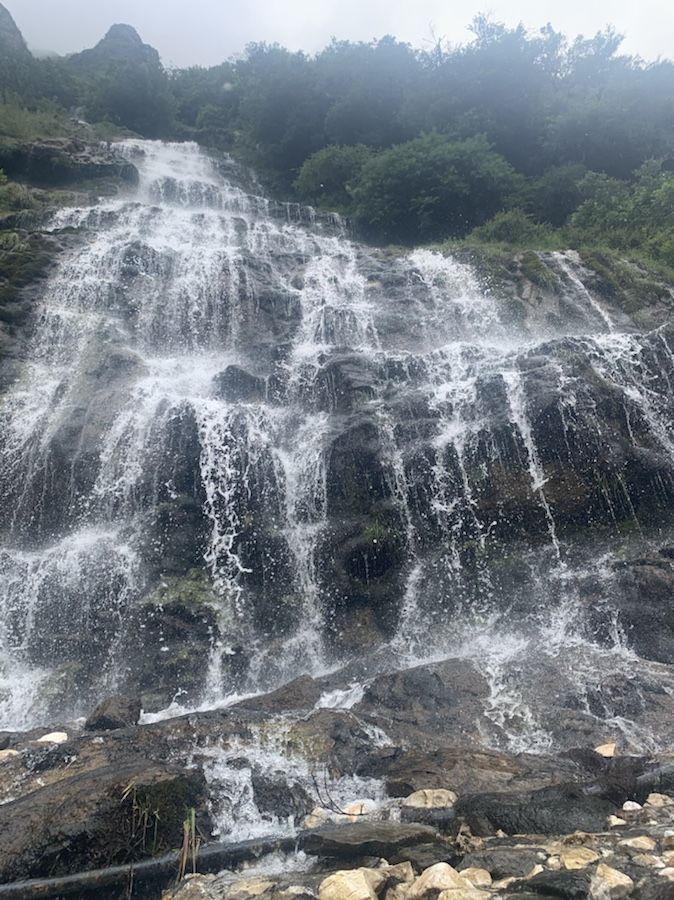 If possible the second day of walking was more impressive than the first. Husbands quote of “just when you think you have seen the best bit, you turn another corner to even more” seemingly summing up the spectacular walk. we passed through pine forest, flower meadows, herds of goat, edged along sheer cliff faces, balanced over tree truck bridges and refreshed our water supply in ice cold water falls. All the time accompanied by stunning vista and views across the gorge.