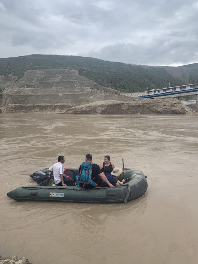 Our bus pick up point was across the river, so from our lunch at Tina guest house we endured an incredibly bumpy drive (Making me wish I had worn my sports bra) down to the river edge. here the currents were so strong that our intended ferry couldn’t pass. Instead we took it on turns to ride a ducky over the fast flowing river… on full power it was only able to inch up stream.