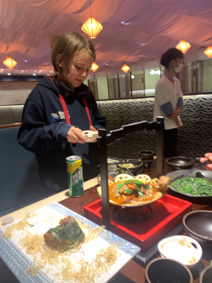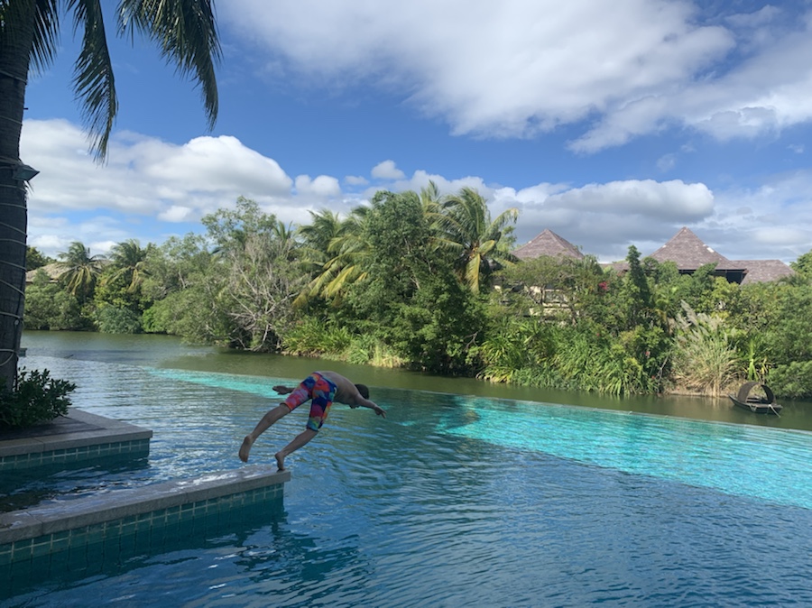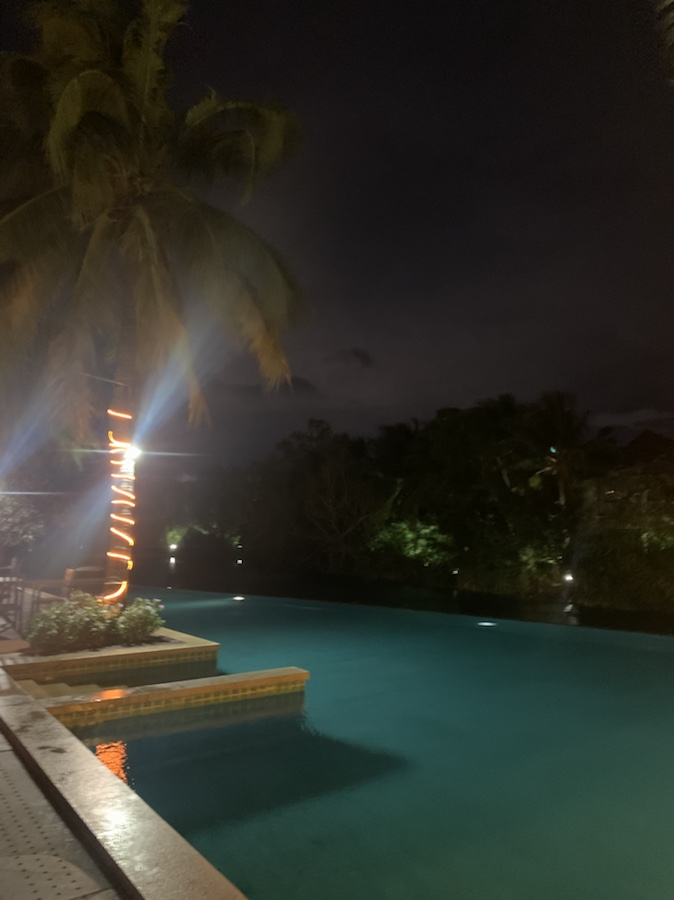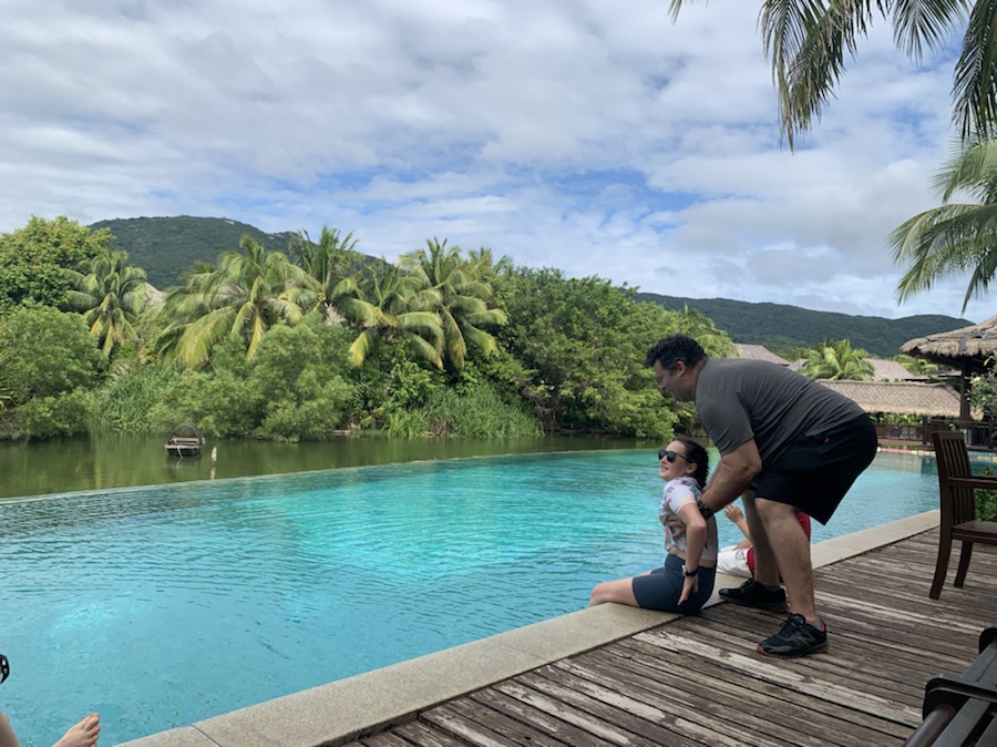 There was a Chinese restaurant onsite, but it was super posh… the food came out fancy. Some had dry ice under it making it smoke. Other on ornate stands. All of it very tasty (despite the odd crushed bone). With full bellies we headed back to our villa and all fell to sleep in very comfy beds.