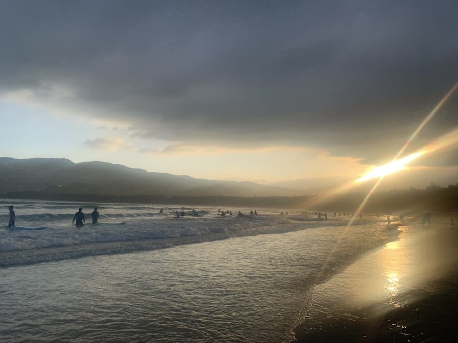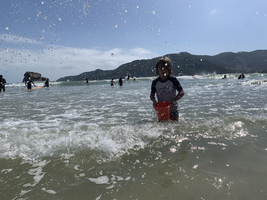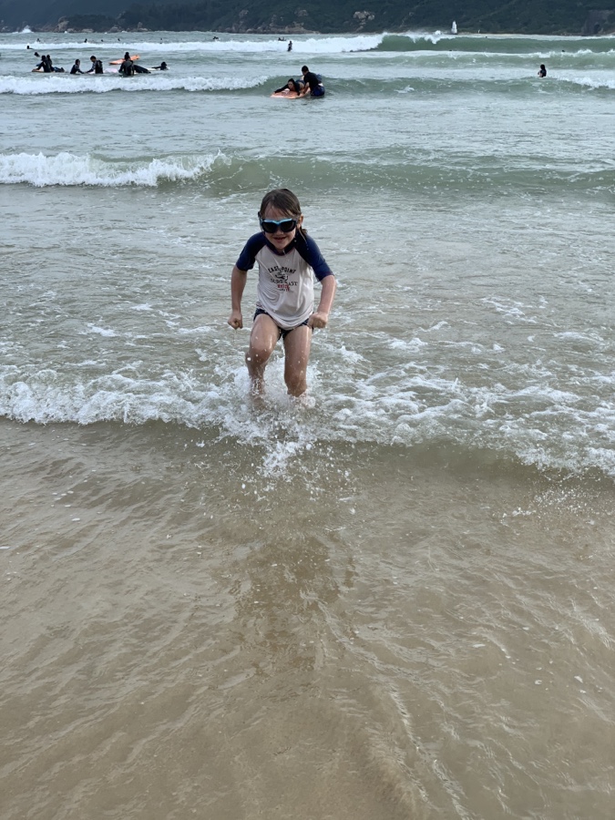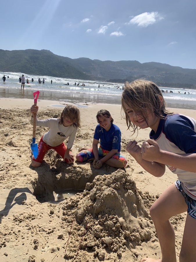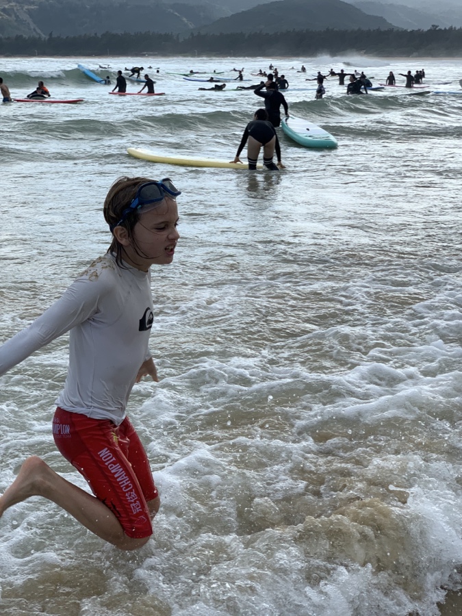The target beach was 40 mins away but It did not let us down. Yes it was busy… as all places are but we found our spot no problem. Picked a place in front of a bright pink building (next to the building with a Christmas tree on the sand?!?) so the kids could locate it easy. We hired a surf board, slapped on sun cream and had a fantastic day. The rule was swim in front of the pink building, don’t swim alone and never past your waist without an adult.