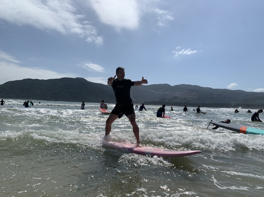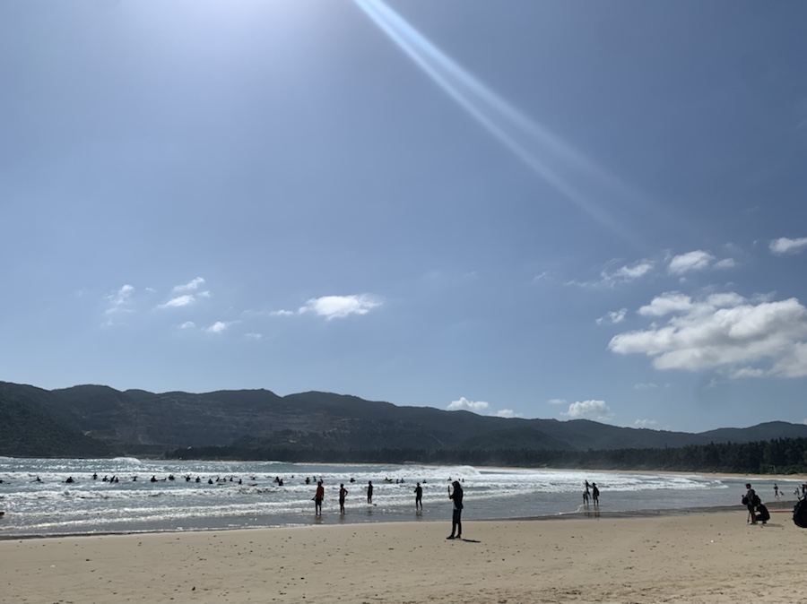 We knew it to have good surf as it had a slower decline into the sea. Also it was more sheltered, so hopefully less windy. I wasn’t keen to be sand blistered all day. And China for all it’s amazing ability of production… doesn’t seem to know what a wind break is.