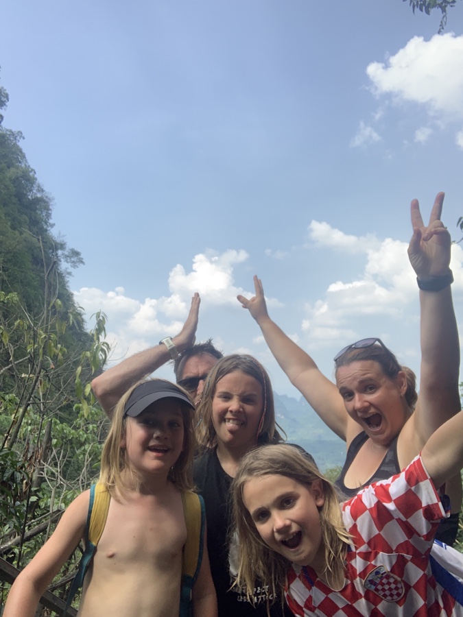 The next morning involved stocking up on suncream and a few other necessities before our long journey to the Vietnam boarder regions. At two o’clock we headed to the hospital, apparently our results were not ready and we were told too come back a 16:00. Trying to make the most of our last few hours in Yangshuo we decided to hike up one of the karsts for a view over the town. 1.5 hours of very sweaty climbing up, (and I mean sweaty, and I mean up up!… ) we got a fantastic view. How my children can still have the energy to run around after such a climb I do not know.