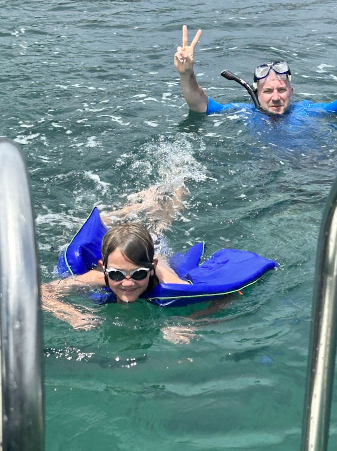 After a little persuasion (I am a swimming teacher might have been said 🤦♀️) that the boys were capable swimmers they were allowed to get in without jackets. We also swapped the to large masks for there own goggles.