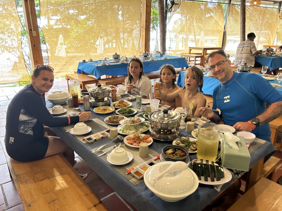 Next stop lunch. again we were spoilt with another beautiful beach. The beach side amenities clearly set up for larger tours but as it is low season we got to enjoy the place in relative peace. Lunch it’s self was a selection of fresh seafood prepared in traditional Asian methods, hotpot, soups, stirfrys and salads. The flavours were varied and tasty. My boys hungrily dived straight in, completely unfazed by the unfamiliar.