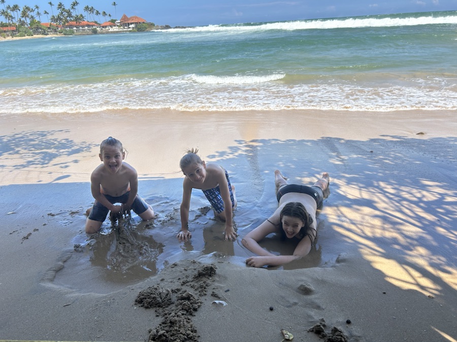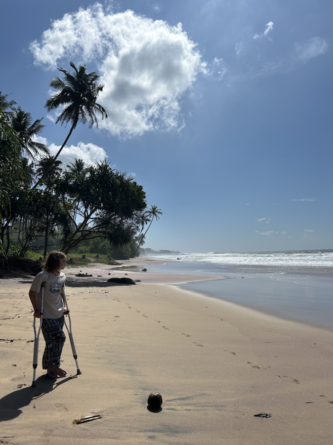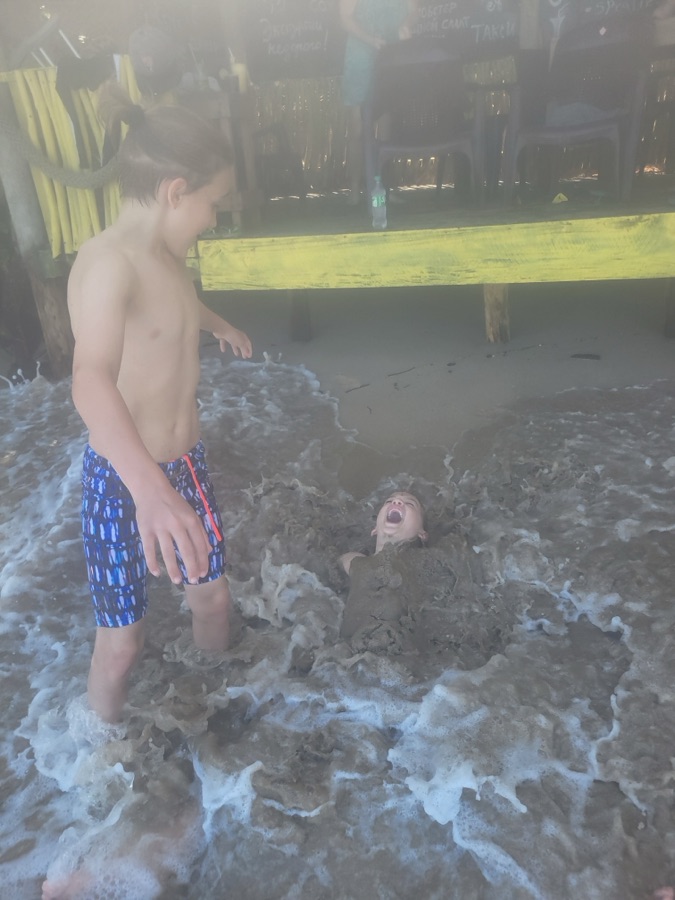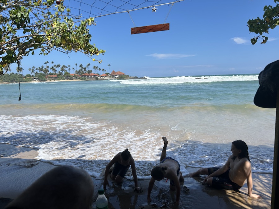 Although I could have said doing not a lot for hours the boys tummies again forced us into action. Chamath (our host) organised a tut tuk to his friend Kava’s restaurant on a beach where swimming was safer.