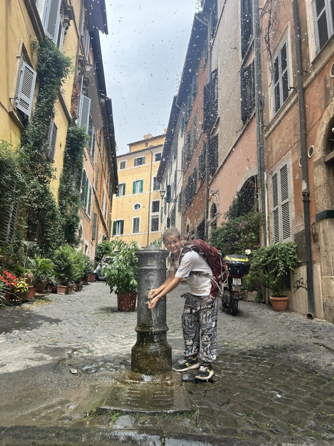 7) walk back to monastery as heat became unbearable, cool off in fountains and give in to requests for gelato