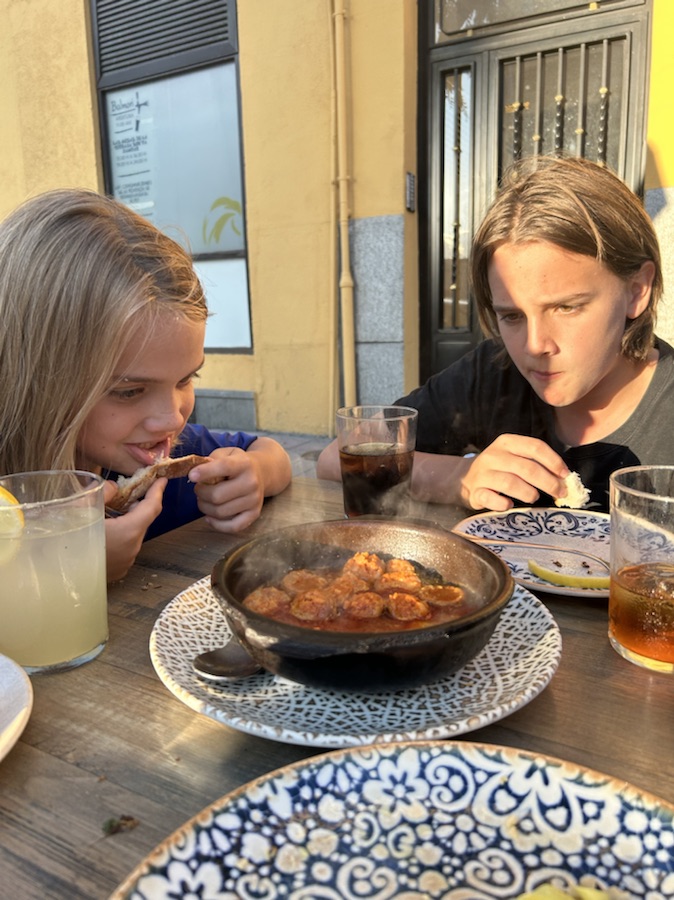 For our final evening we decided to go out for Tapas, but as we were in Spain the restaurants don’t serve till gone 8. We enjoyed a last few hours in a park before finally sitting alfresco to eat. Next challenge was the menu… all in Spanish…. We finally after much confusion ordered what we thought the boys would like. Well the wait and confusion was worth it as everything we ordered was delicious, the Parma ham and panacottta (not in the same dish thankfully) were the boys favourite.