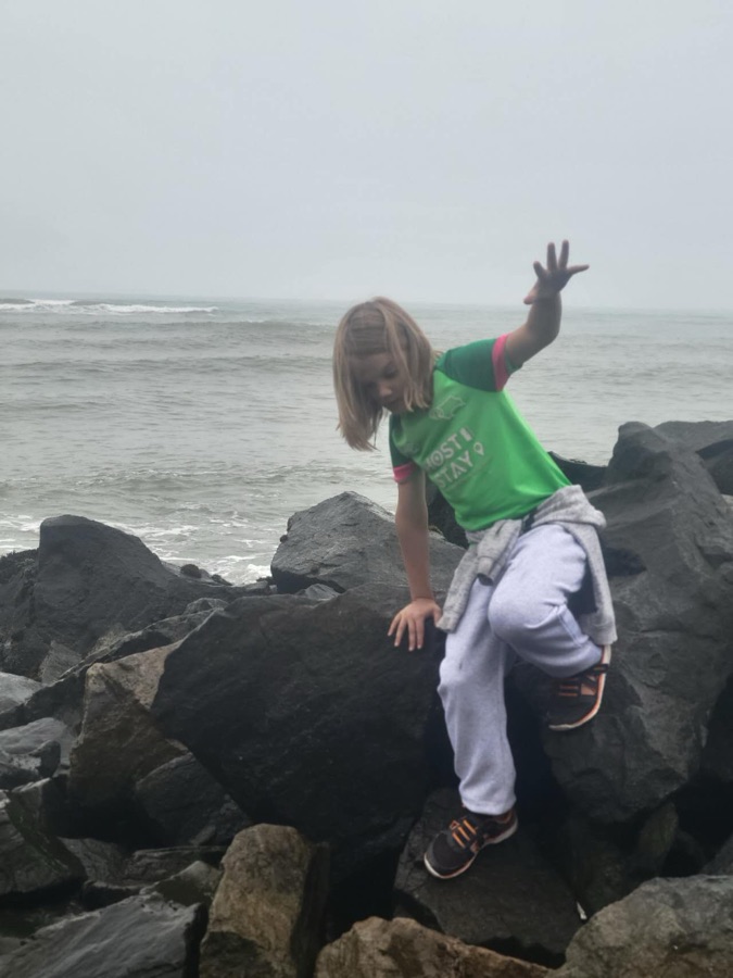 For me the highlight was the pebble beach. No matter how cold there is always a draw to go paddling! It certainly wasn’t the most picturesque beach we have visited… with the busy road and fog but we happily spent a good few hours collecting rocks, listening to the waves, watching surfers skimming rocks and paddlingin the shallows.