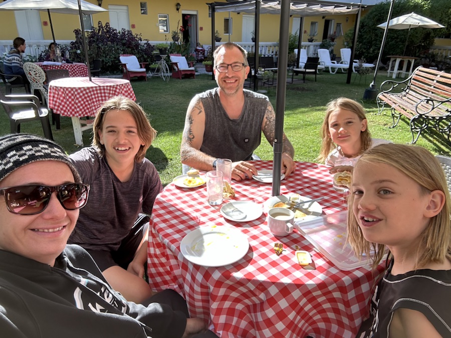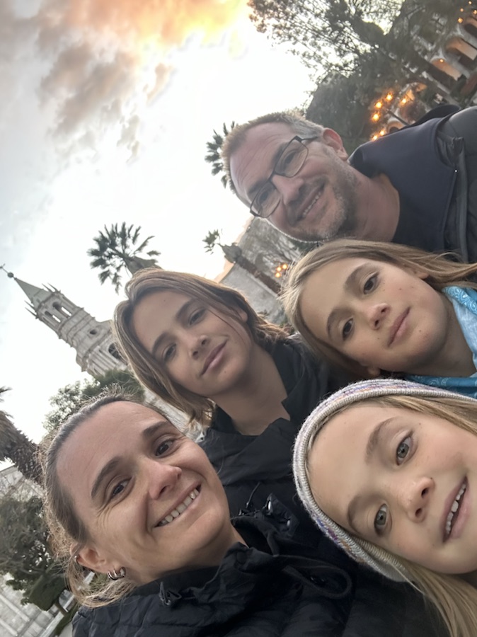 So what is there to do with 3 tired boys and slightly grumpy parents on a Sunday morning in Arequipa…: well not a lot. We dropped our luggage of at the hostel and went in search of coffee and somewhere to chill out. Unfortunately nothing was open at all! On the streets was only us and the odd taxi flying past. However what was instantly apparent was how stunning the city is. The old centre windy cobbled streets is all built out white volcanic rock, which all seem to lead to a grand platza, churches or monasteries. Whilst wandering the narrow streets you get glimpses of the many volcanoes surrounding the city.