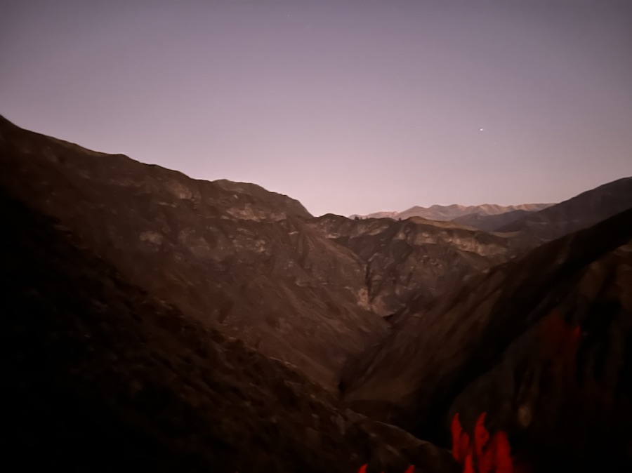 With a large numbers of two day hikers joining us, the beginning of the hike echoed sceans of some biblical migration. A hushed line of small flickering lights zigzag above and below us, with the only real sounds being those of shoes on rocks and mules clomping by. The good thing about the darkness was all you could or needed to focus on was the next step up and not tripping over.