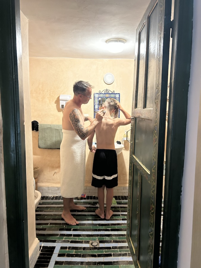 The days were super hot but our small riad again offered us mid day refuge from the heat and opportunity to chill or workout.